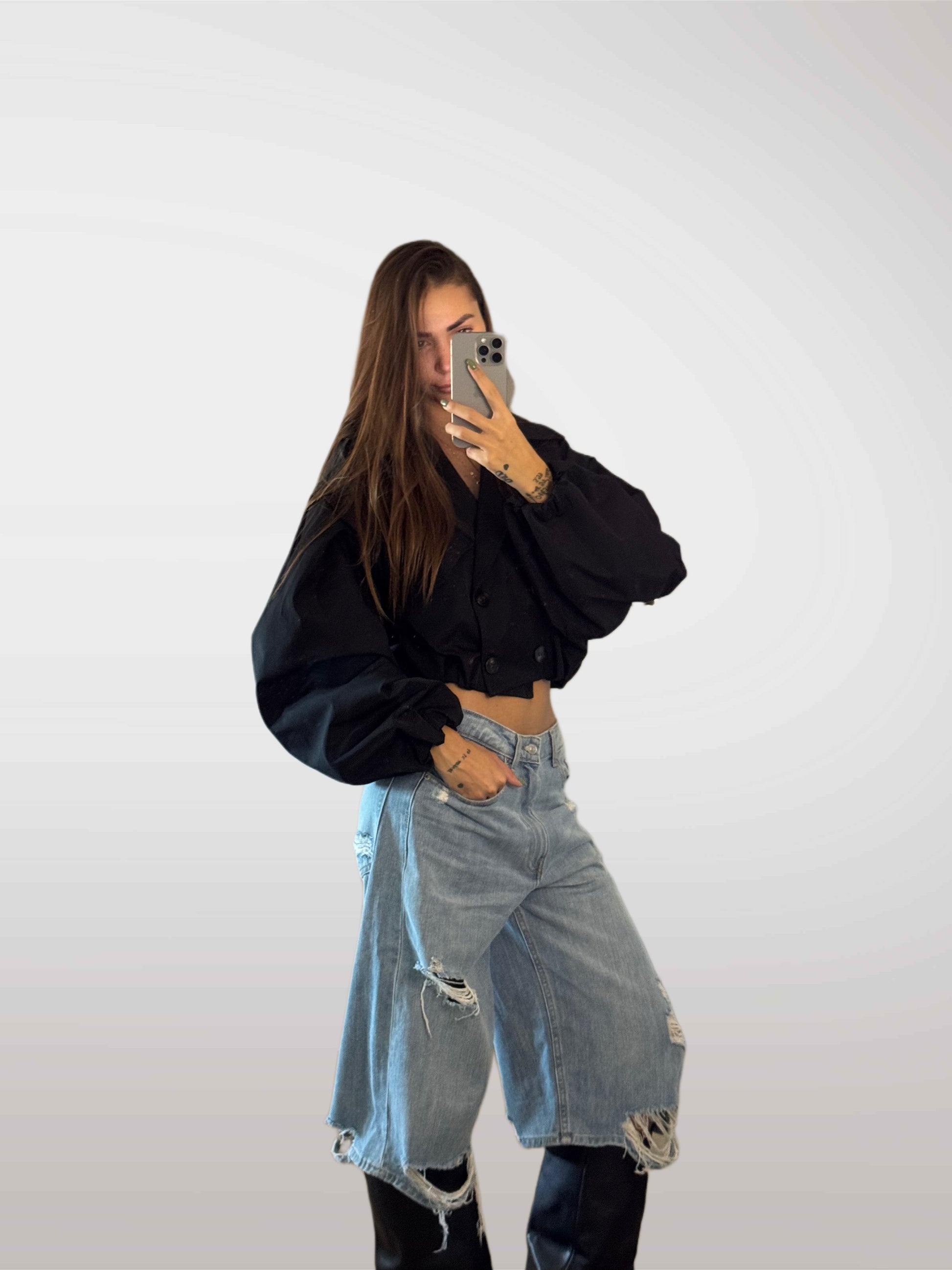 Bermuda sotto il ginocchio con strappi