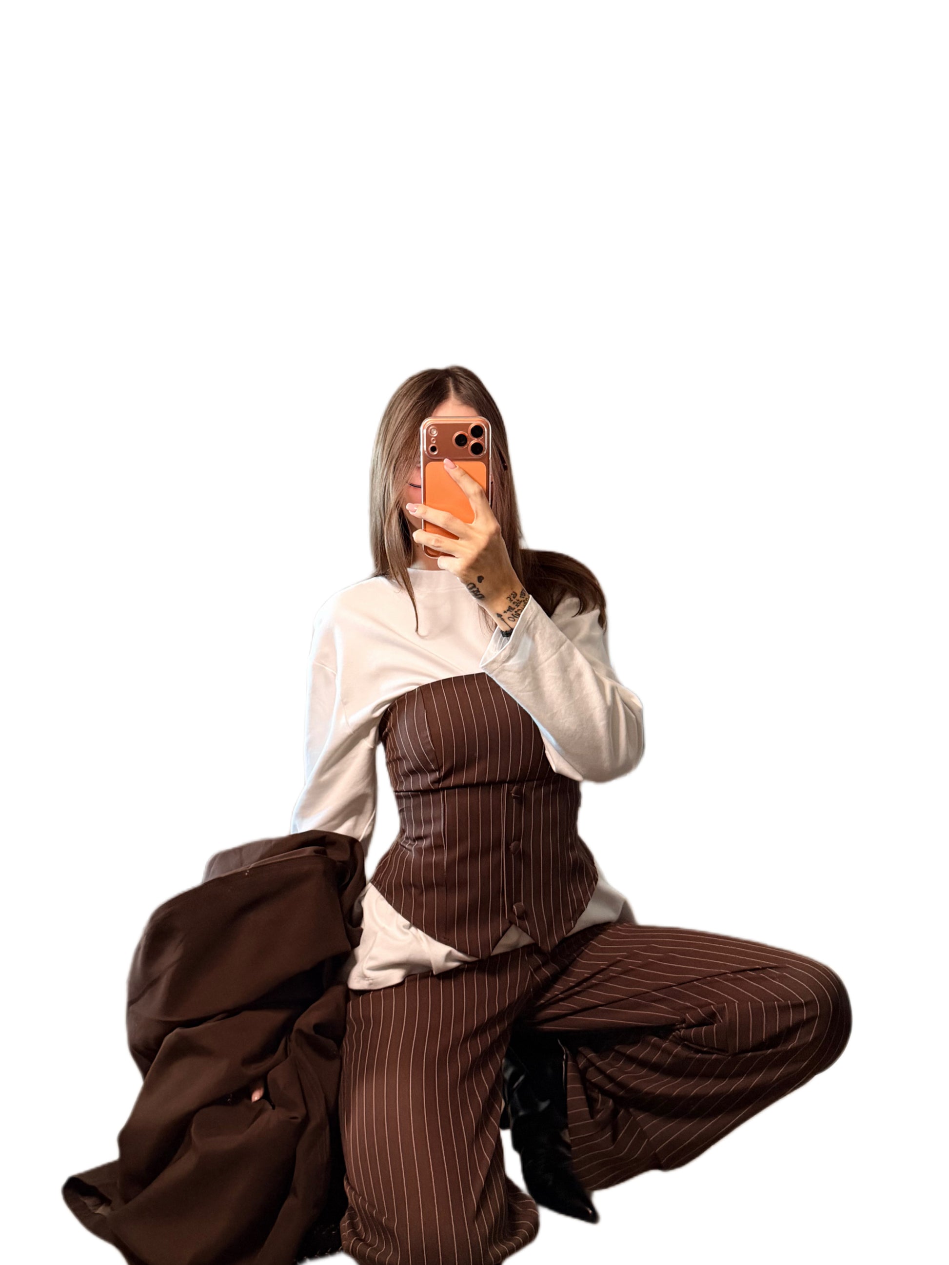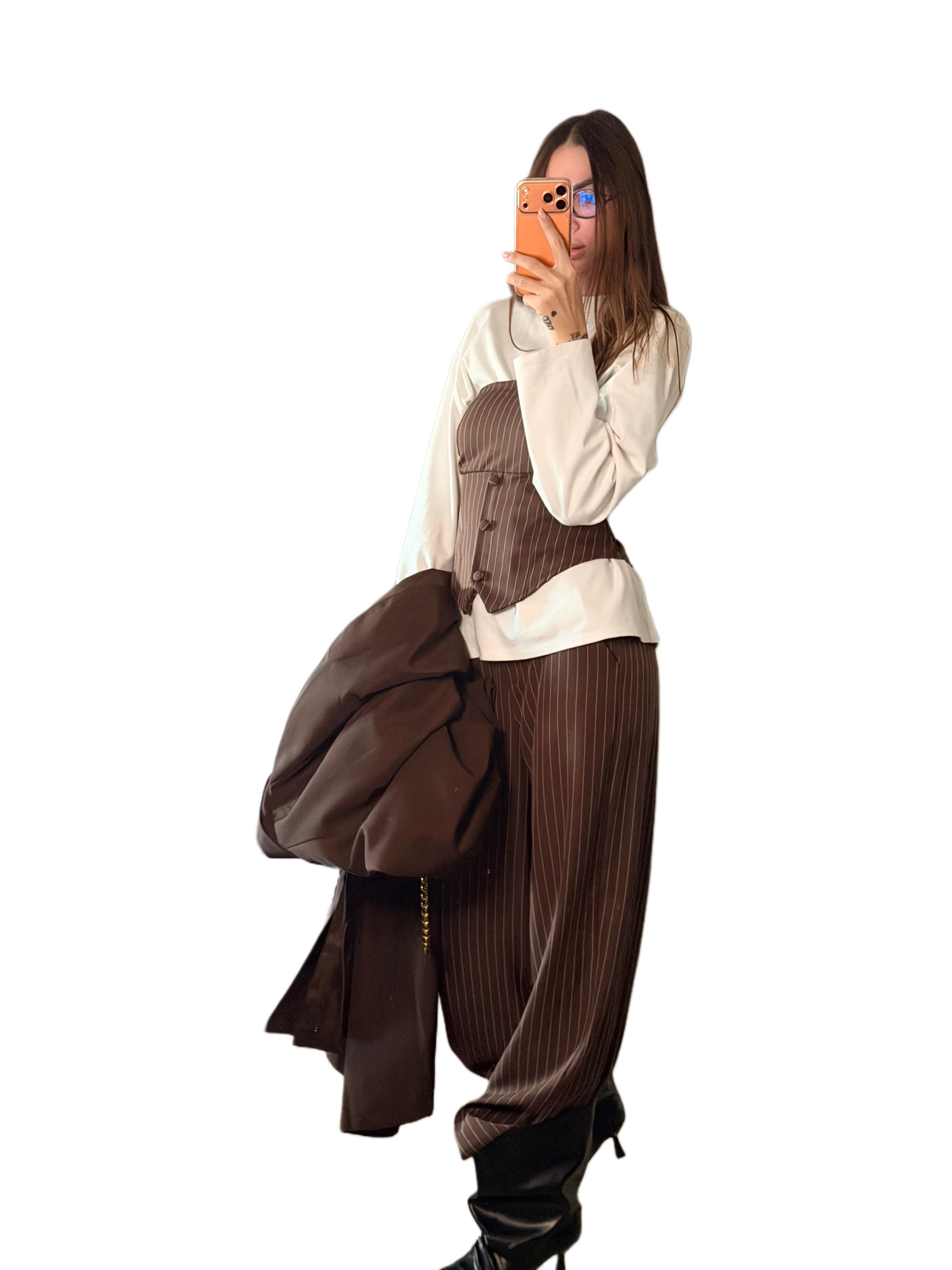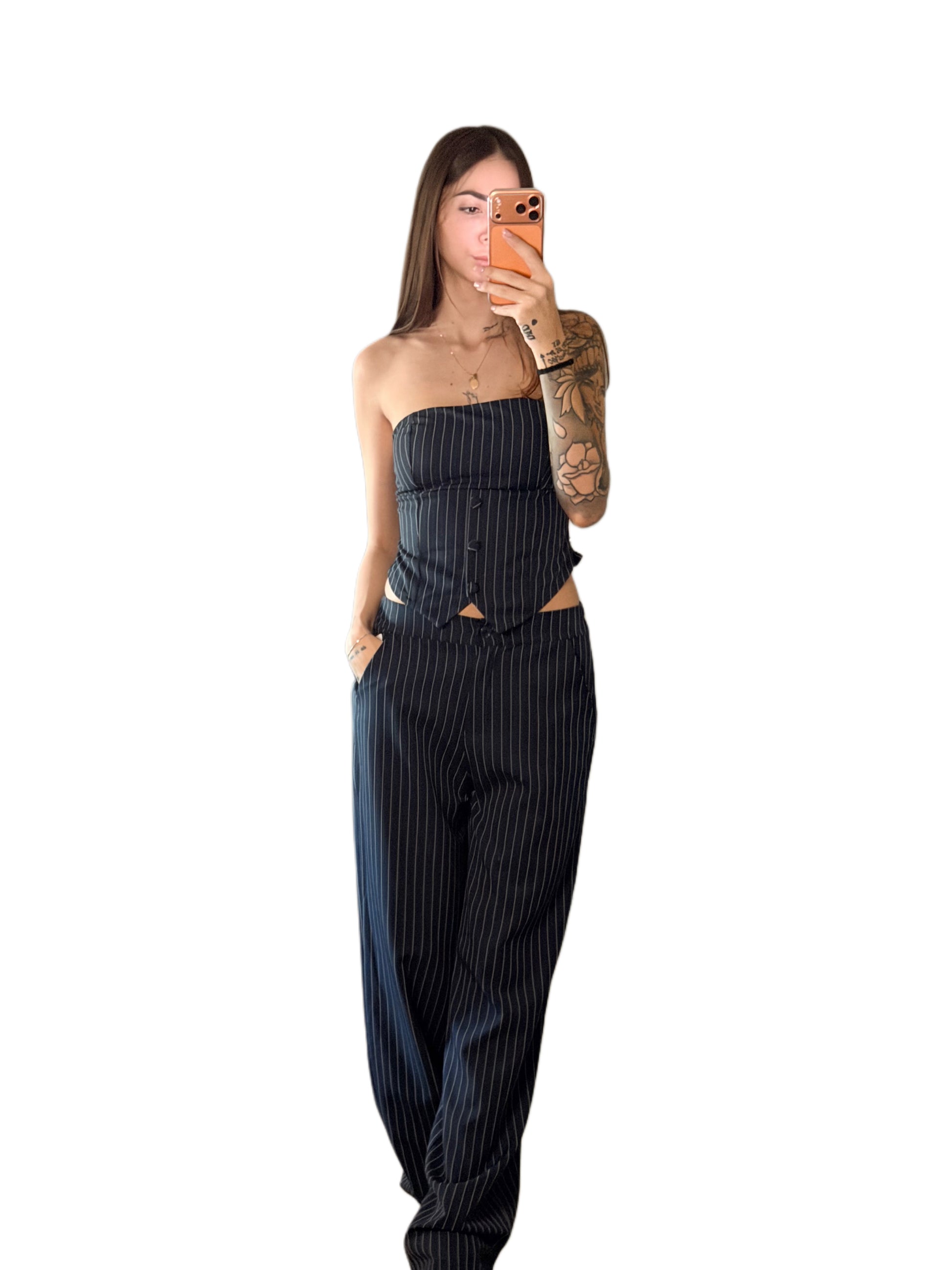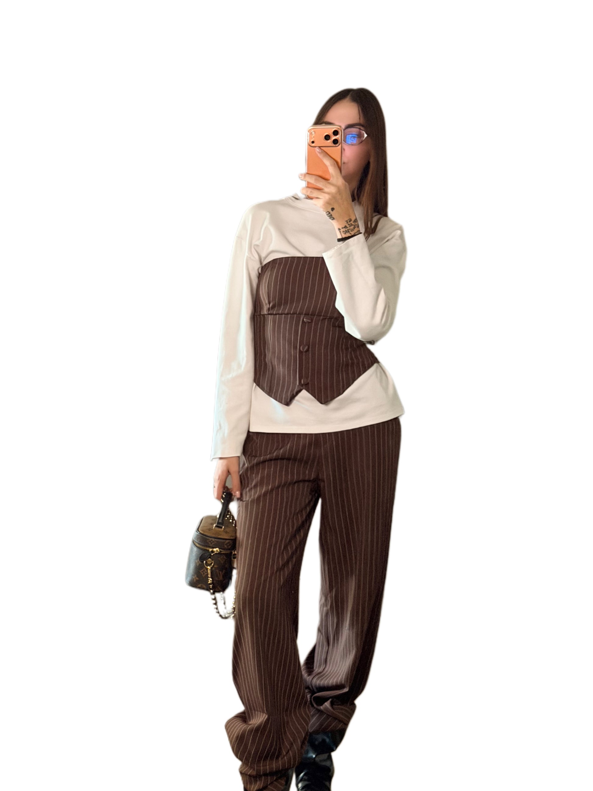 Completo gessato con corpetto e pantalone con molla sul retro