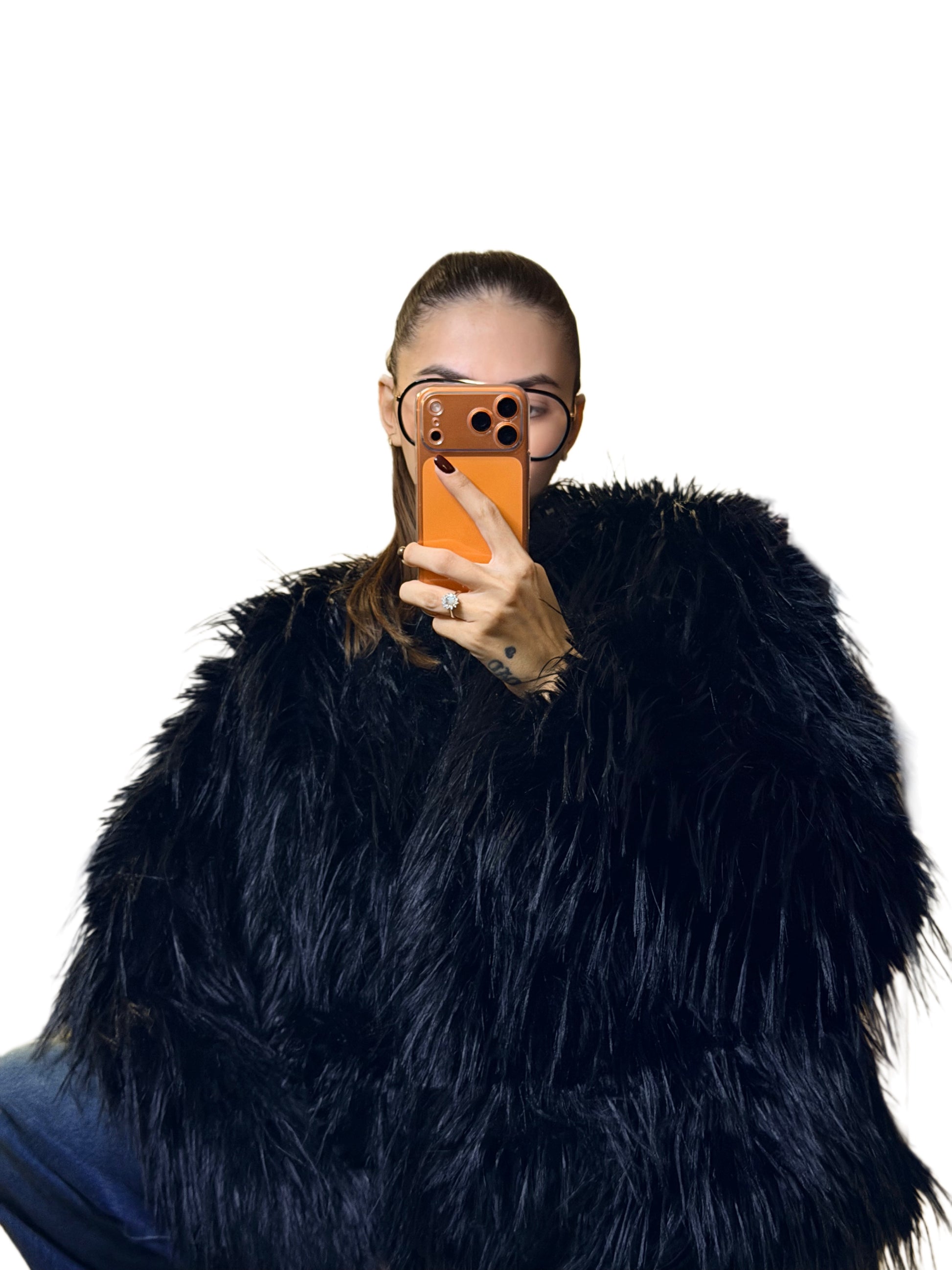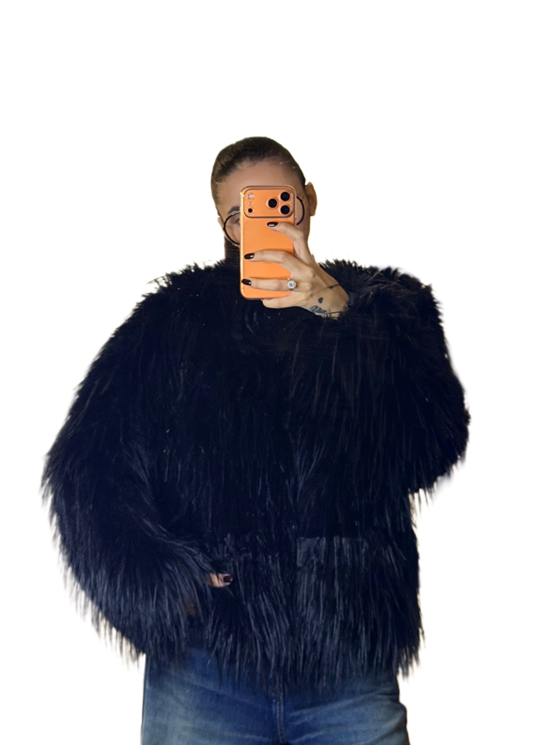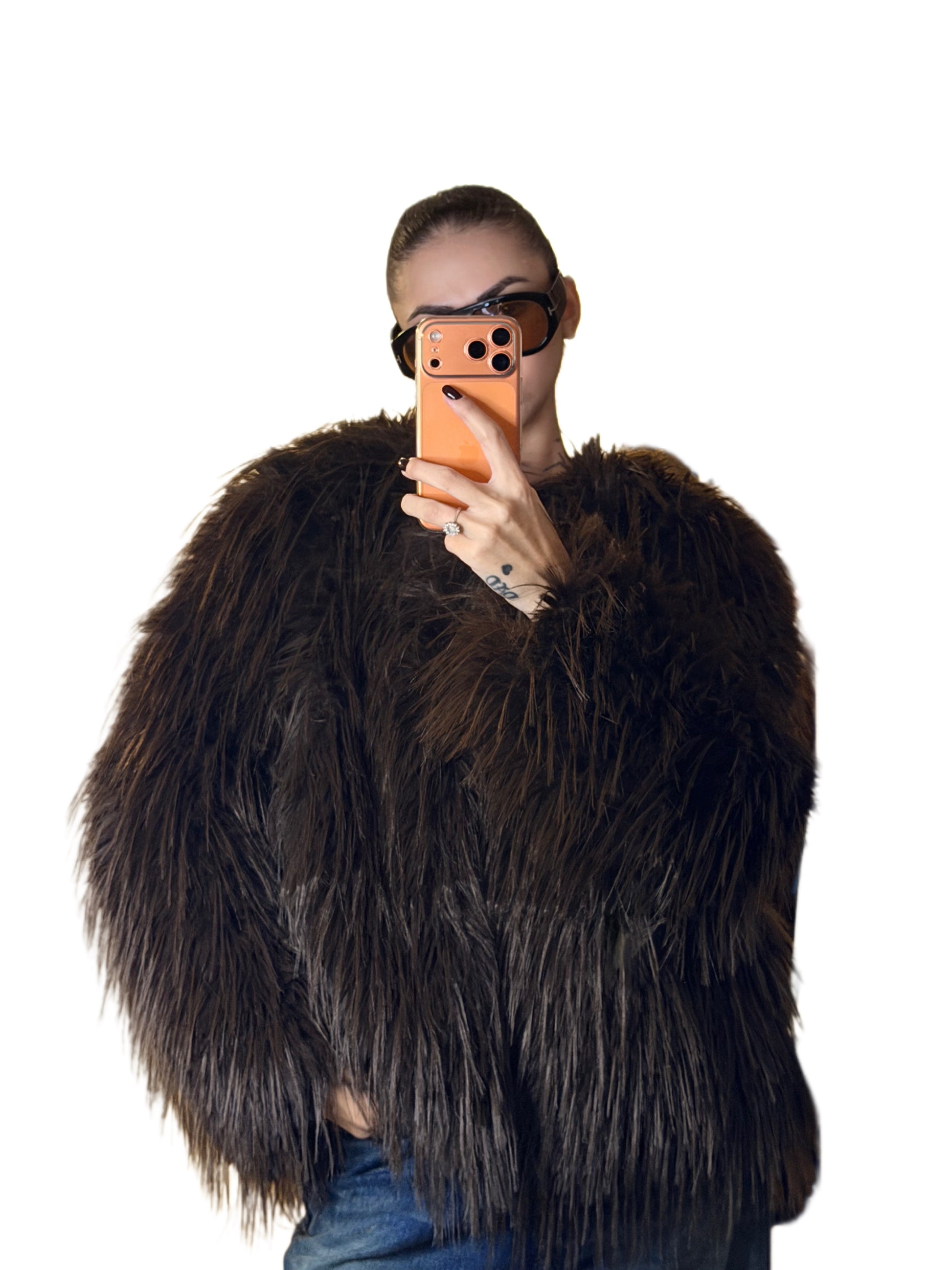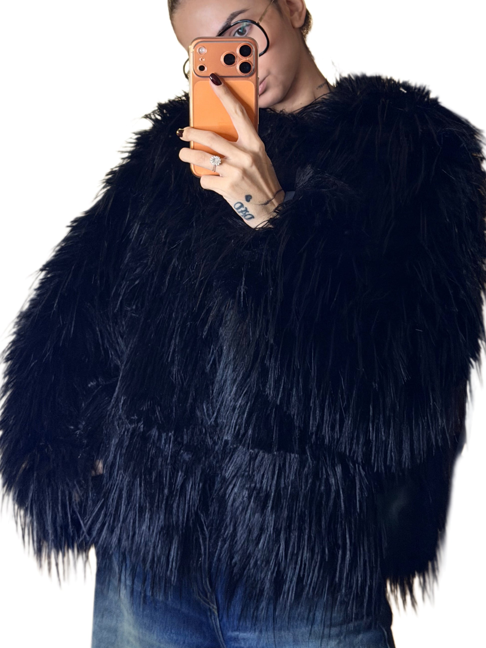 Pelliccia girocollo a pelo lungo,chiusura con gancetti.