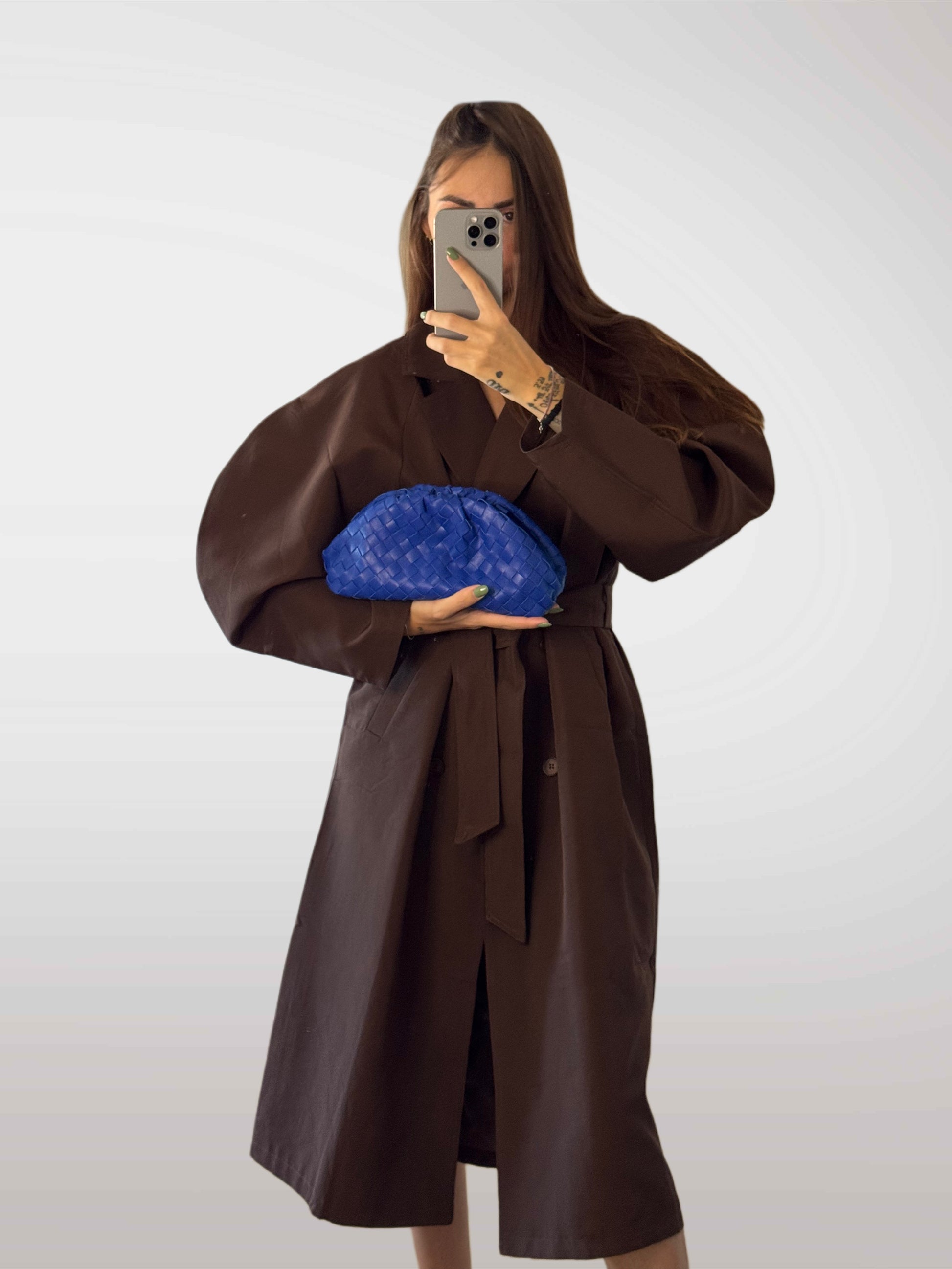 Trench con cintura in vita,maniche ampie con linea morbida e spalla scesa.